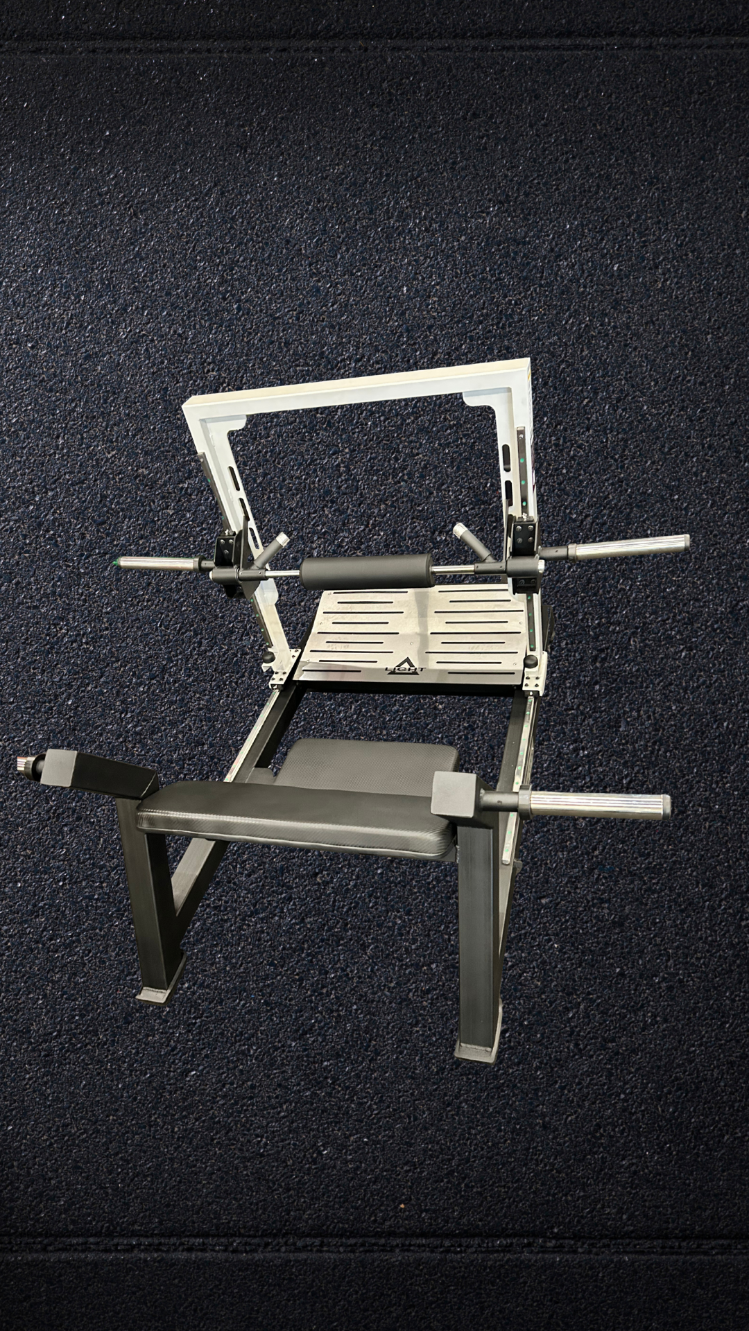 Equipamento focado no fortalecimento de glúteos e posteriores de coxa com movimento em duas dimensões.